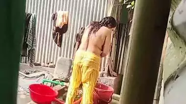 Neighbor Bengali Aunty Bathing Outdoor Caught On Camera hindi porn